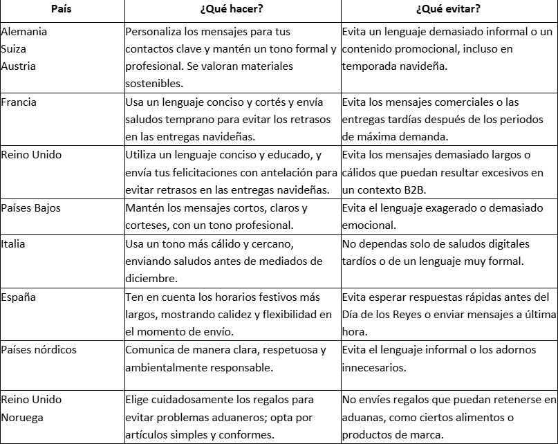 - Qué hacer y qué evitar en los saludos navideños B2B en Europa